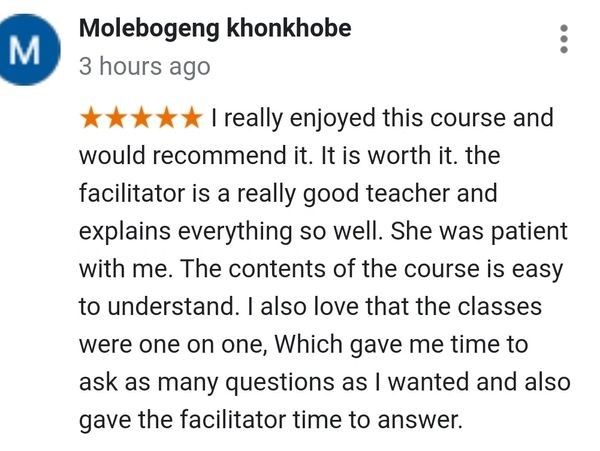The tuition fee is payable as a once-off payment upon enrolment, and once enrolled the textbook must be purchased at least one week before the commencement of lectures so that you can be well prepared for lessons. The tuition fee must be paid directly into the institution’s bank account. And the ebook textbook must be purchased directly from Amazon.com. Here's the link to the book: a.co/d/gkQnDsO